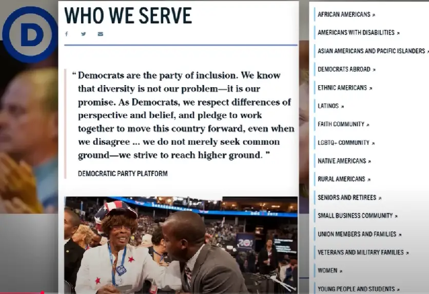 Then we even see similar things in politics. For example, in the United States, the Democratic Party have a “who we serve” page that we have taken a screengrab of below, take a look at the list on the right-hand side: